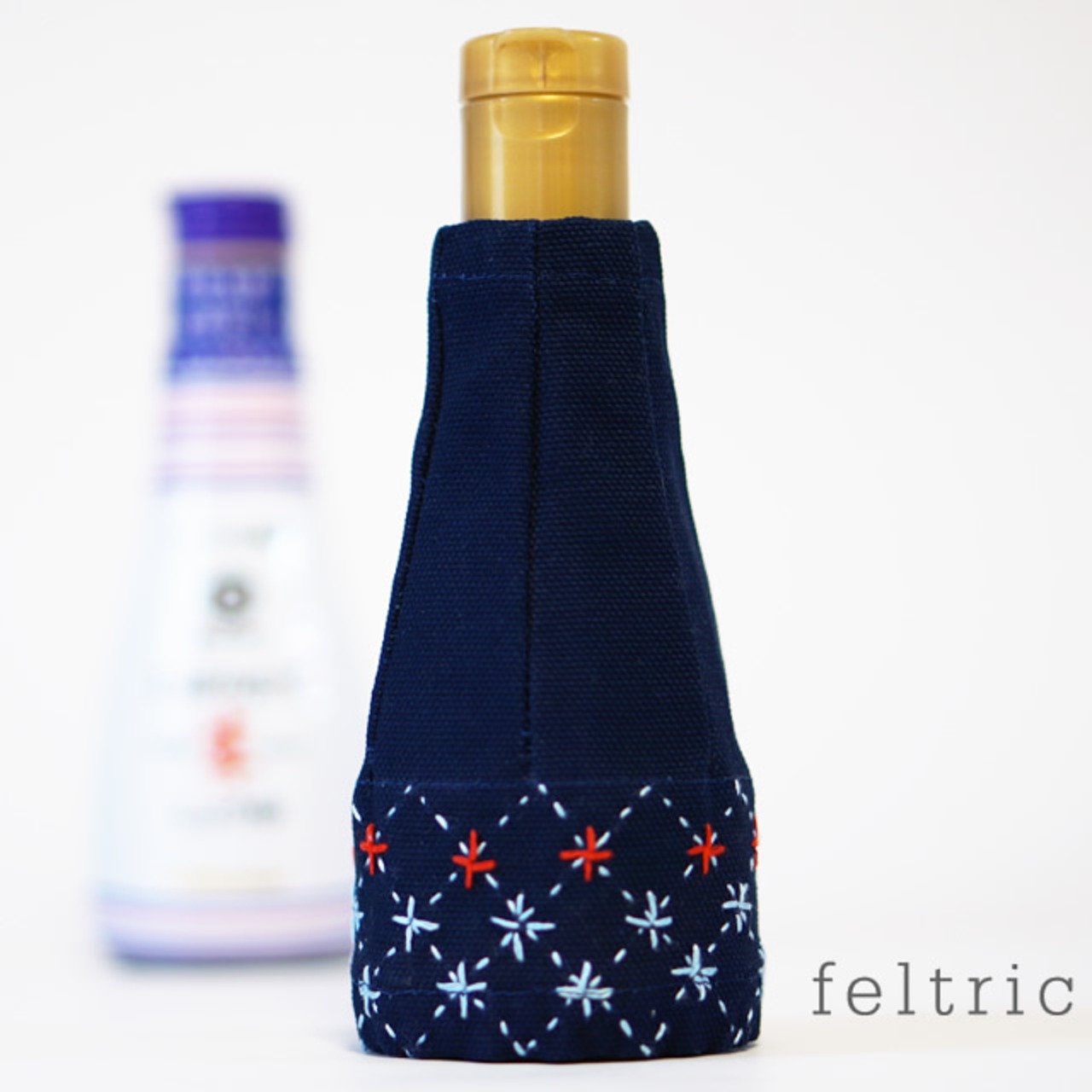 お醤油カバー 200ml用 / 刺し子風刺繍 紺
