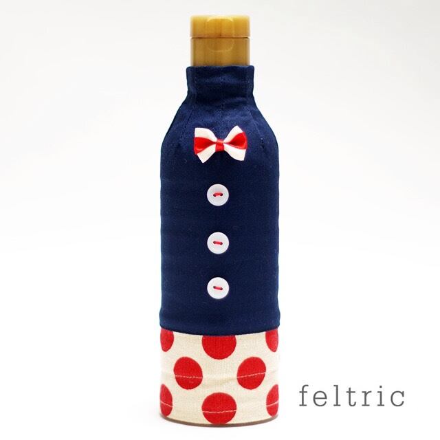 お醤油カバー 450ml用 / ダークブルー ドットボウタイ付き