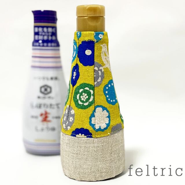 お醤油カバー 200ml用 / イエロー花と鳥二分[103]
