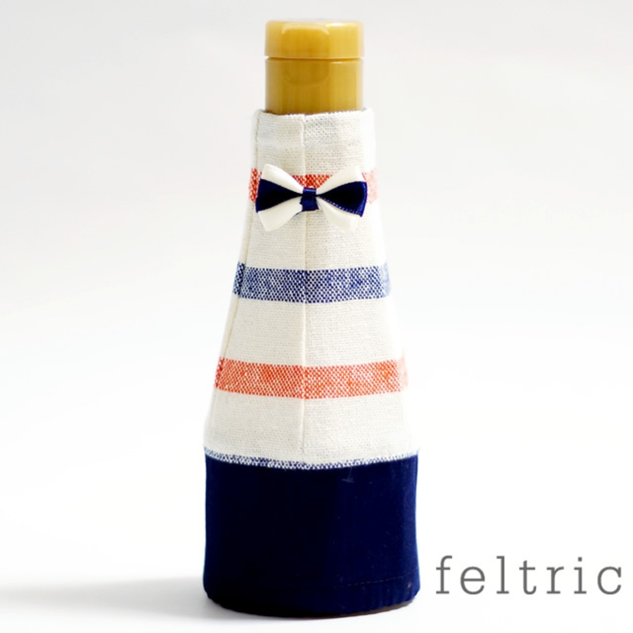 お醤油カバー 200ml用 / ストライプ 紺リボン