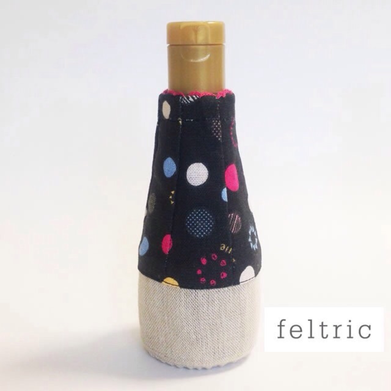 お醤油カバー 200ml用 / ブラック ベージュ 水玉