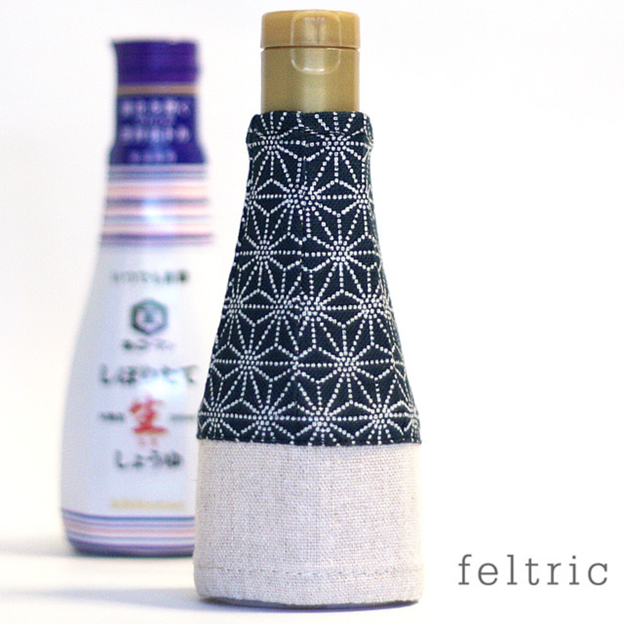 お醤油カバー 200ml用 / 和風 紺麻の葉柄